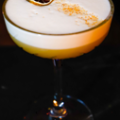 Saquê, cointreau, xarope de amêndoas, maracujá, togarashi, albumina e suco de limão taiti.
